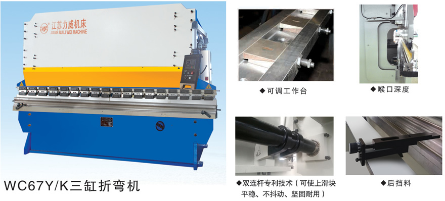 上模配有挠度补偿机构,250吨和长度4000MM以上采用下挠度补偿机构。